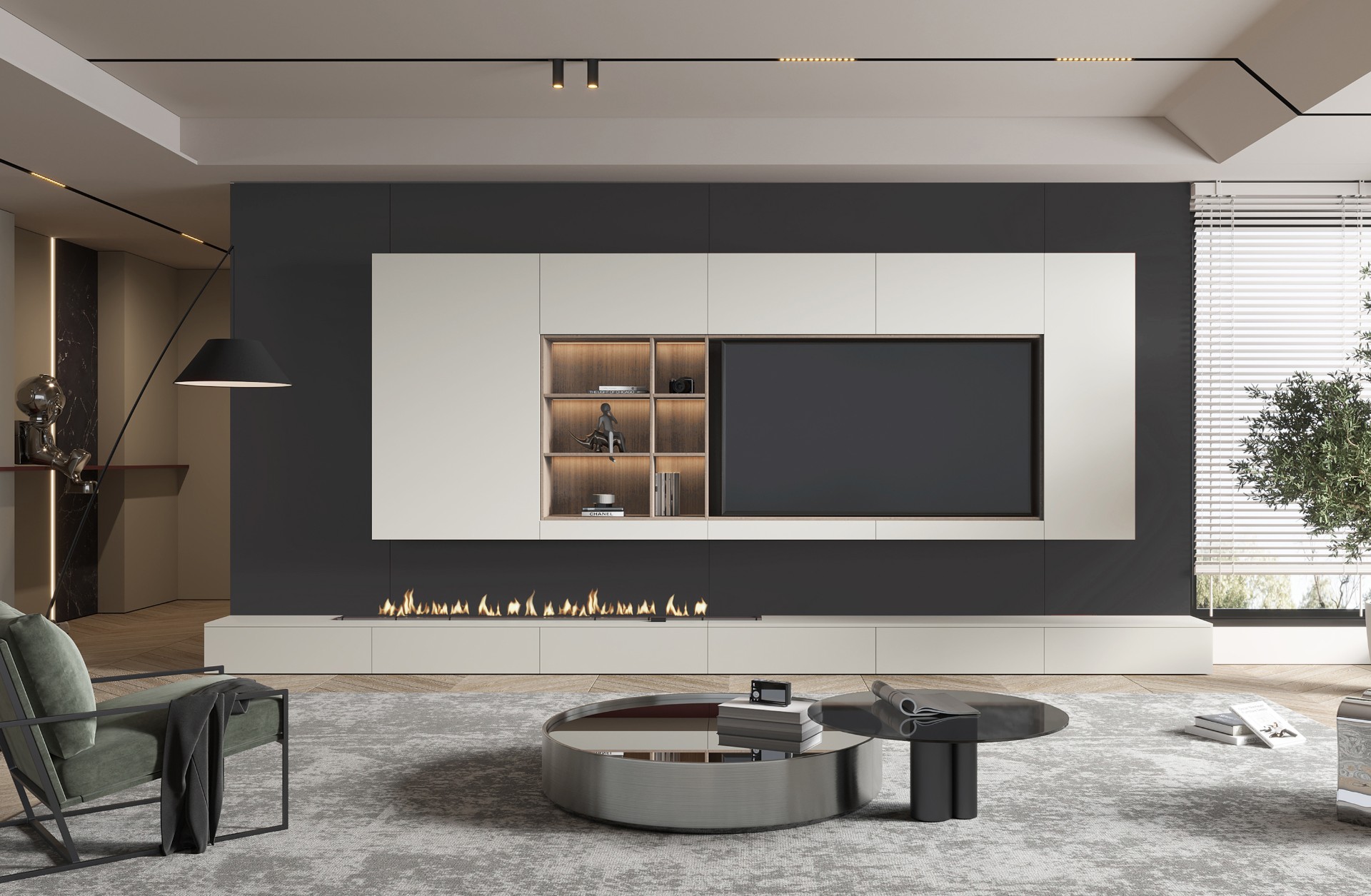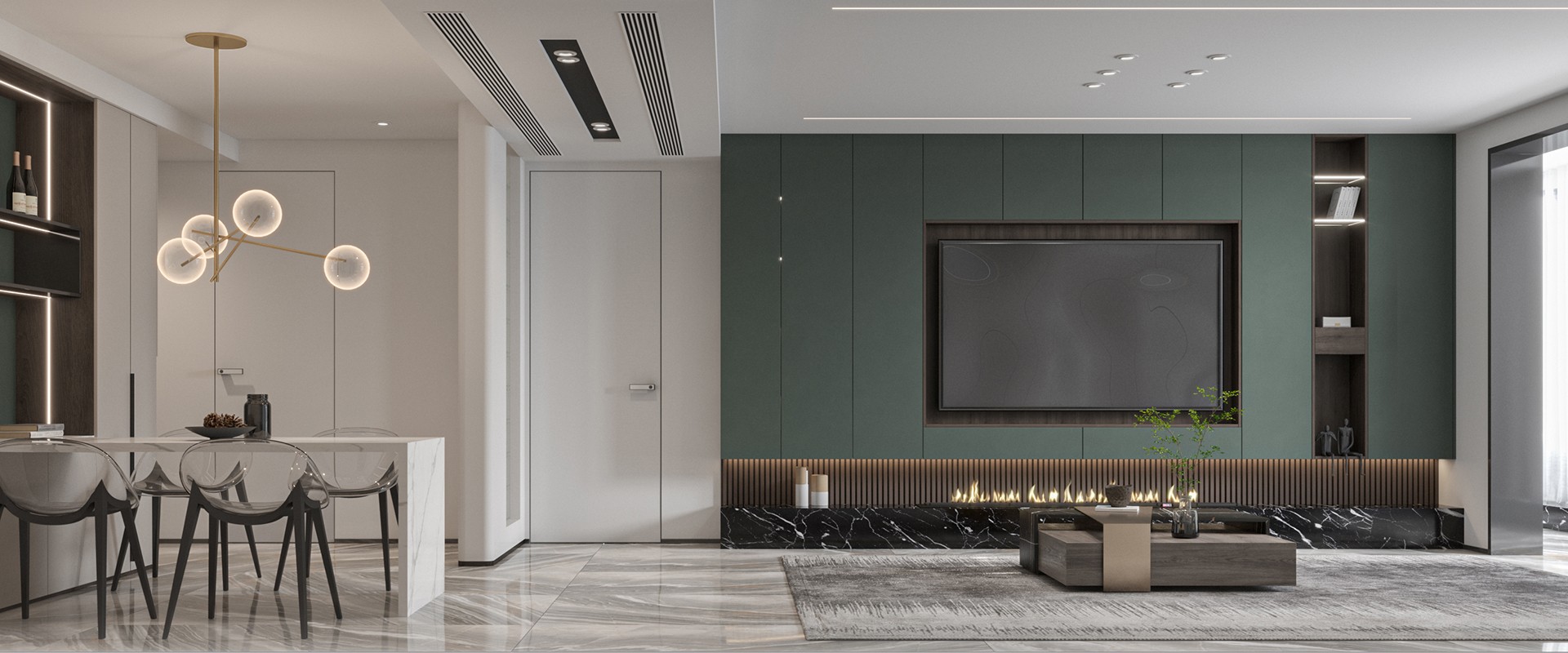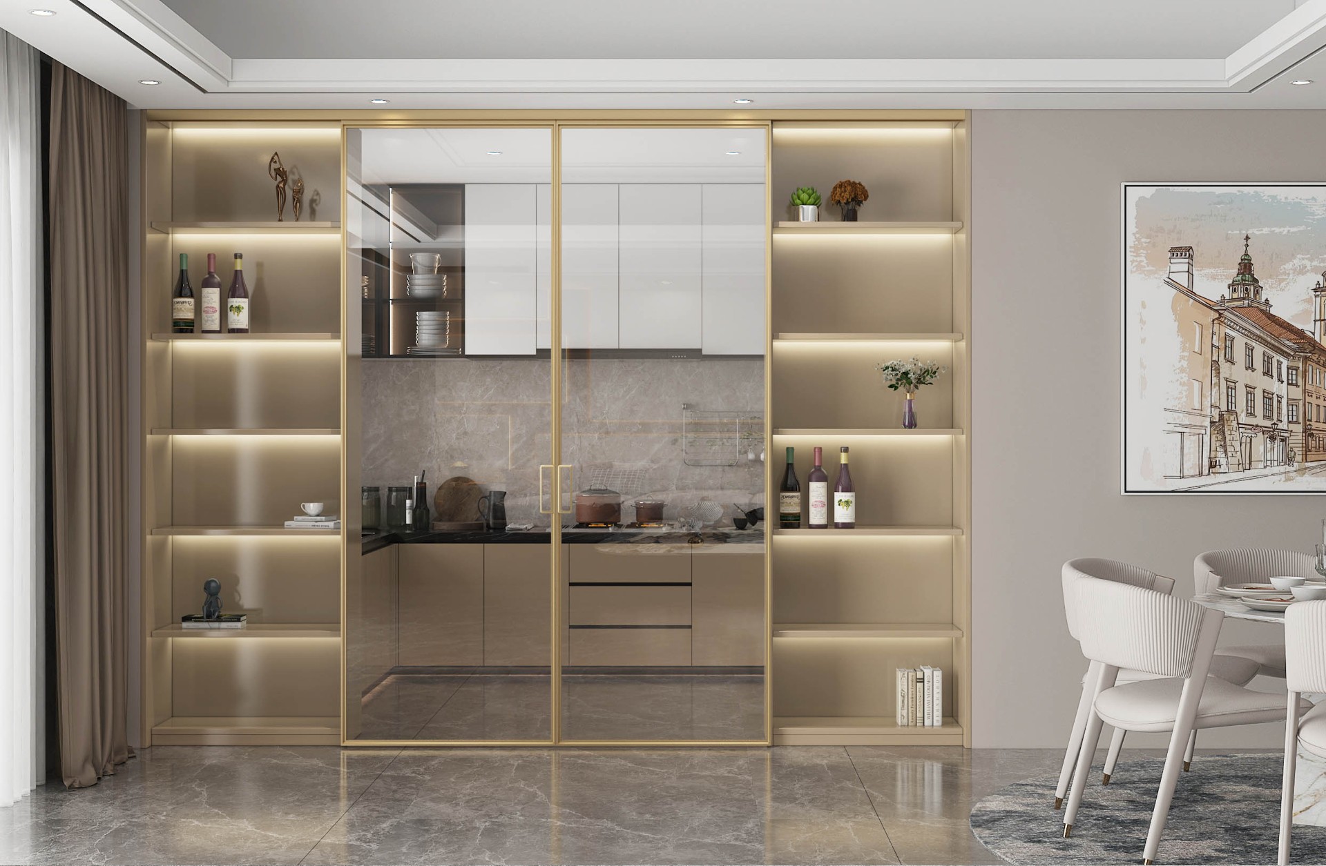 以木門、背景墻、系統門窗為基礎的家場景立面裝飾系統
